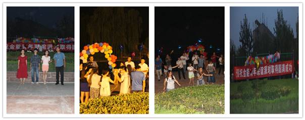 20日晚的公司倪倫河畔,河水在靜靜流淌,星光璀璨,月兒朦朧。環繞的親水平臺,燈火通明,彩燈搖曳,五顏六色的氣球簇成的拱門格外漂亮,歡歌笑語,熱鬧非凡,劃破了夜的寧靜,洋溢著一派歡快的氣氛,公司的青年聯誼會在此舉行。