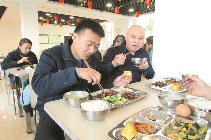 余人,采取自助餐形式,飯菜葷素搭配,品種眾多,讓就餐人員吃得放心,吃得舒心。(圖為就餐現場)